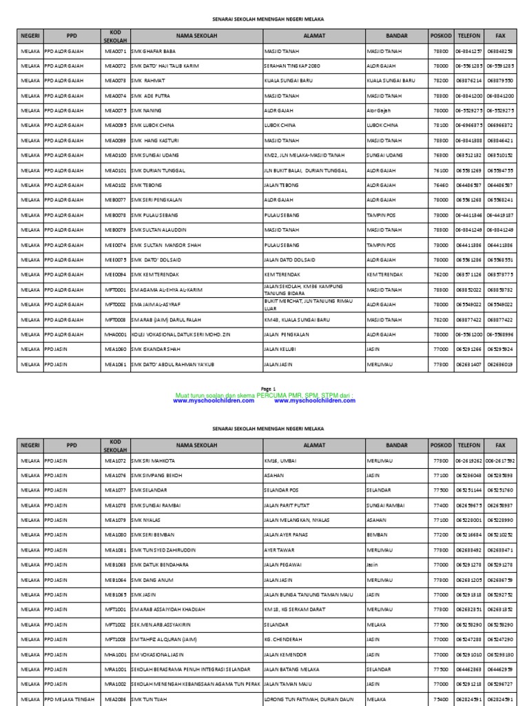 Senarai Sekolah Menengah Di Melaka Pdf